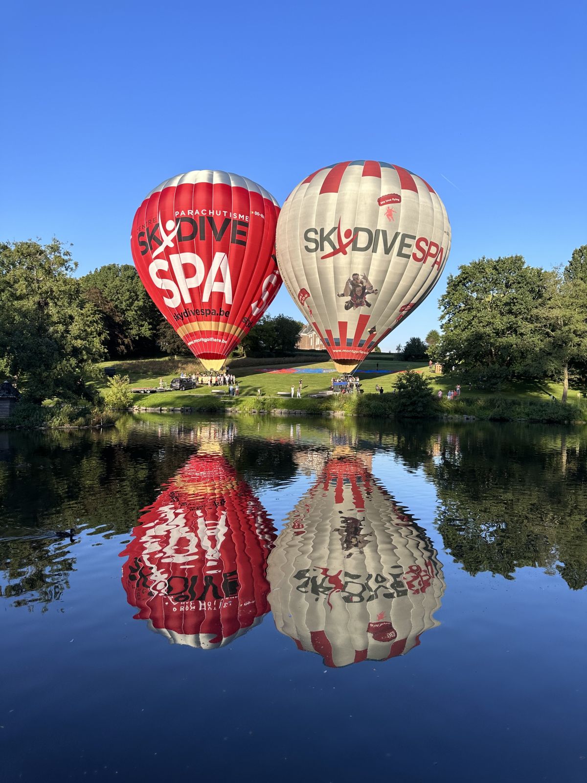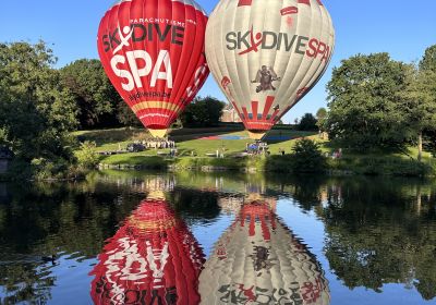 Het opstijgen vindt plaats op het grasveld tussen de hoofdvijver en het kasteel. Er is gratis parkeergelegenheid.